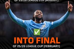 体育资讯02月05日讯 联赛杯半决赛次回合,曼城3-1双杀纽卡,塞梅尼奥随队晋级决赛。