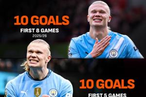 哈兰德本场比赛的第1个进球帮助他本赛季的联赛进球达到了10个,成功上双,而据统计,能够在英超前8轮比赛中实现进球上双的球员只有一位,正是哈兰德。