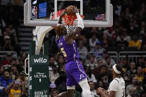 体育资讯11月24日讯 NBA常规赛,湖人半场62-55领先爵士。