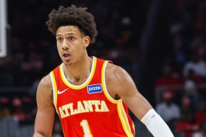 本场比赛杰伦·约翰逊出战38分钟9投4中,三分3中0,罚球4中4拿到12分11篮板6助攻,出现6次失误。